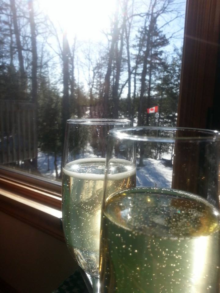We dashed out of work and caught a Go Train to Barrie, where Kaylea picked us up and brought us to their place. We celebrated by breaking out some sparkling: