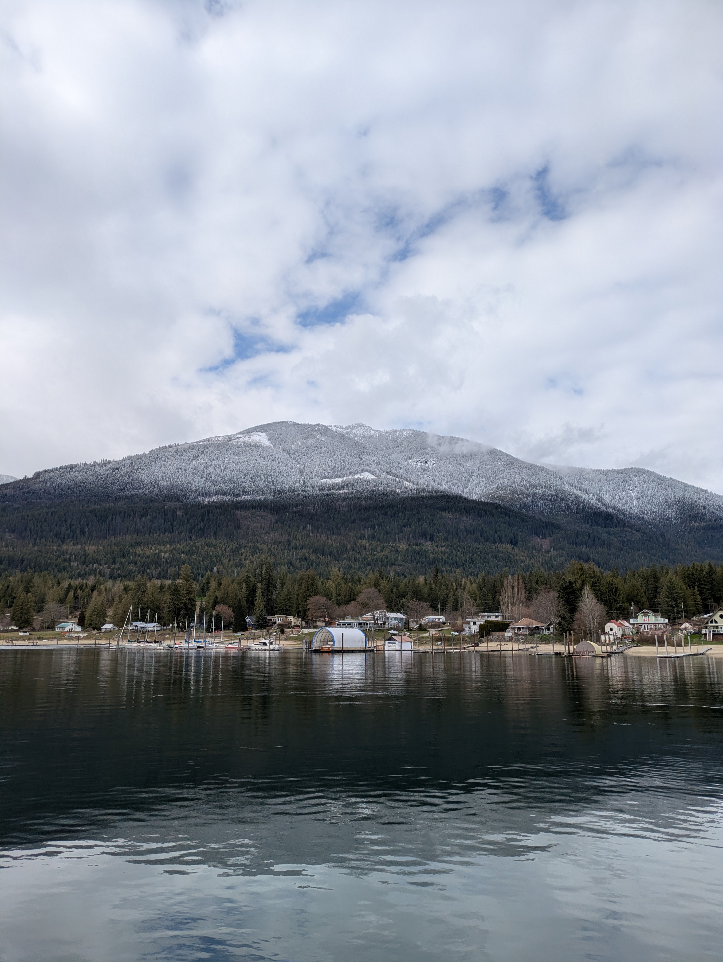 When we finally got up for good, we were pretty sure plan C was what we’d go with. But our Fernie AirBnB host messages to say their roads were fine, and we decided to go with plan B: take the Kootenay Lake ferry instead of driving over Kootenay Pass. We collected snacks and coffee at Crumbs, said goodbye to our safe haven of Castlegar, and drove north.