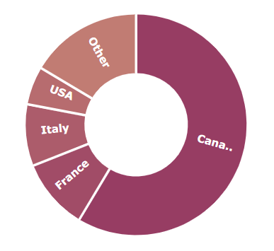 Not that we only drink Canadian, of course. 42% of what I have aging is from, in descending order, France, Italy, USA, Spain, Argentina, South Africa, Australia, Portugal, Austria, Greece, Lebanon, New Zealand, Germany, and Hungary. I pick up bottles here and there when they sound interesting.