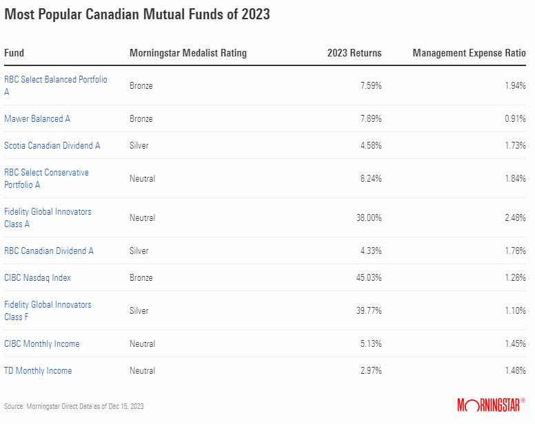 I say this to everyone who tells me about their investments at their bank. 9 times out of 10 it’s some mediocre bank-owned mutual fund which was recommended not because it’s the best option for the customer, but because it makes the bank the most money. Look at this list of the largest mutual funds in Canada, or this table from Morningstar.ca showing the most popular funds on their site last year.