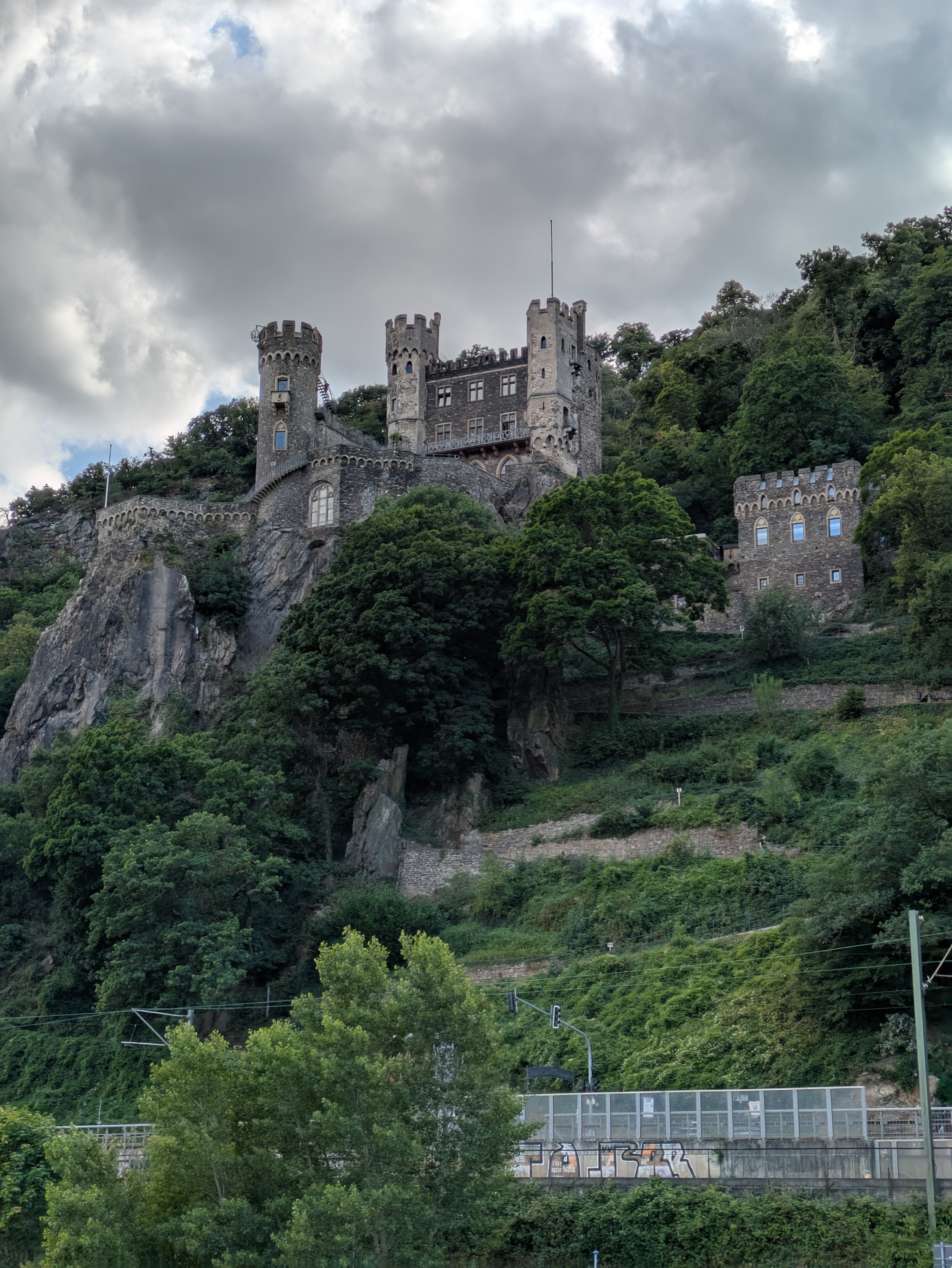 We left Rudesheim overnight, so I slept in a bit, climbed out of bed, and joined my family for breakfast. Forced socialization: a couple from Cambridge. Spent more of the morning topside, but we were back to industrial areas, so not as much to see.