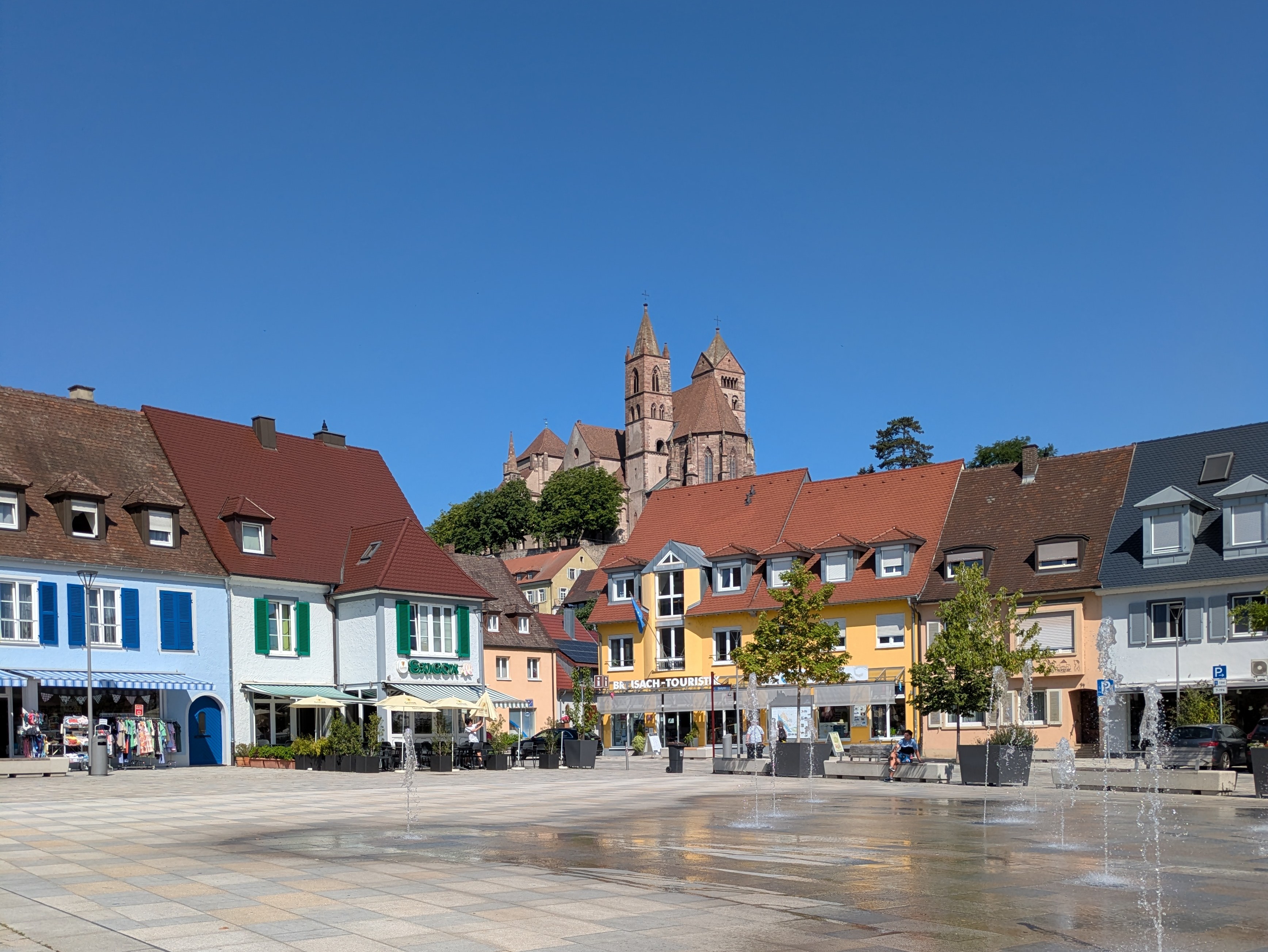 We were docked immediately alongside another boat, so no throwing the curtains open for us. But neither was there any morning activity, so we just rolled out of bed and ate breakfast. One more beautiful day, so once more to the top deck we went. After a while the brother and I walked into Breisach, not five minutes away, and sat for a cappuccino in the square.