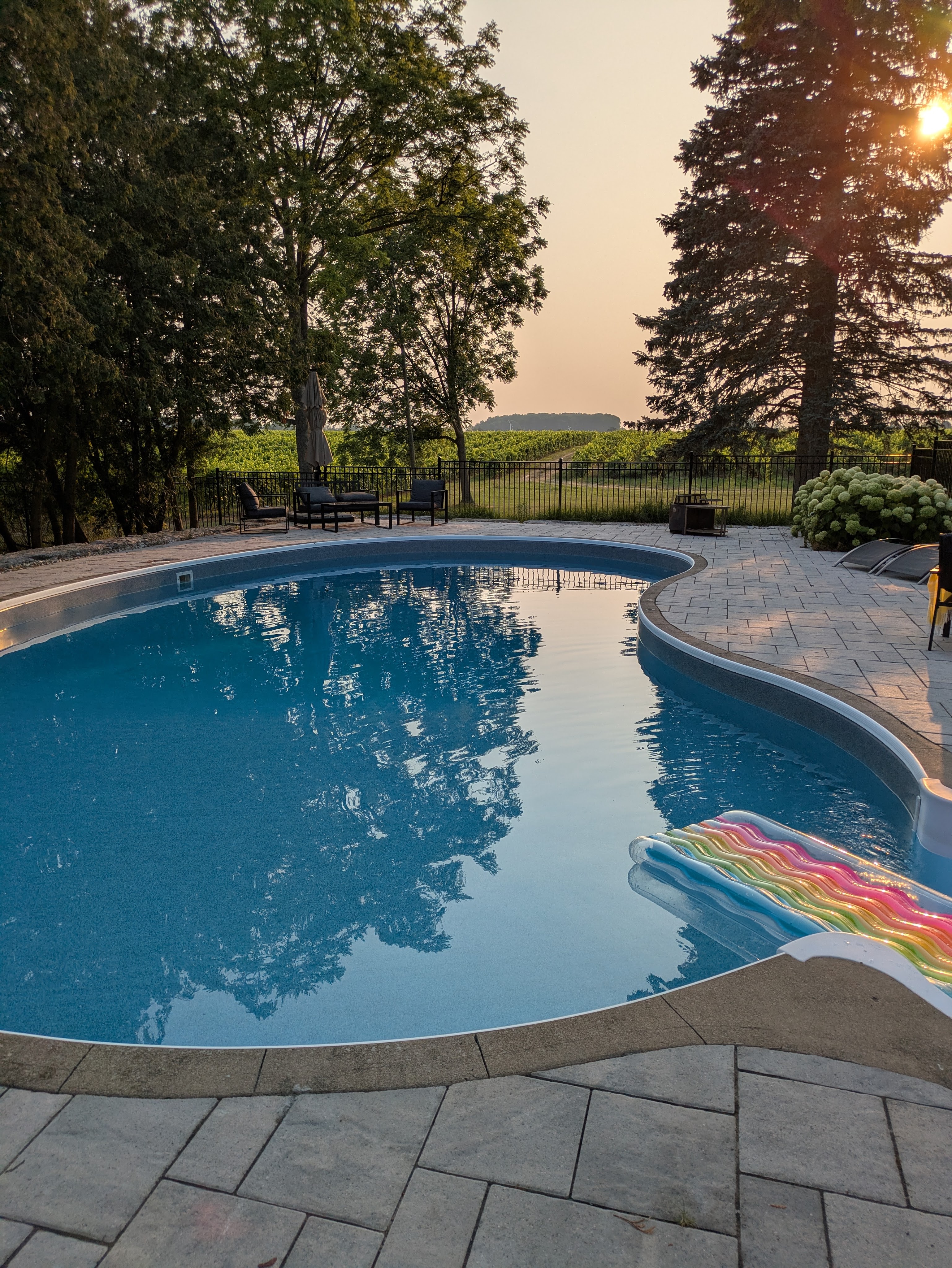 Back at the house we opened a bottle of 2024 Five Rows Pinot Gris, played a round of Pandemic, snacked on fresh local fruit, had a wee nap, and then jumped back into the pool. Over the course of the day we drank a bottle of 2024 Five Rows Sauvignon Blanc while Lindsay made me a big dinner: caprese salad w/ local peaches, shrimp + chorizo fajitas, and peach pie & ice cream. We paired all that with a bottle of 2021 Leaning Post Clone 548 Chardonnay.