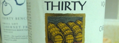 Like, say an Ontario rainbow trout with asparagus and smashed potatoes (prepped by Matt), and a bottle of Semillon-Sauv Blanc. That was the nice, light setup for the main event of the evening. Like last summer when we brought a 2001 Closson Chase chardonnay (which I’d won at auction) to the cottage, we brought two wines for a side-by-side comparison: a 1999 Thirty Bench cabernet franc (won at the same auction) and a bottle of the recently-released 2010 vintage.