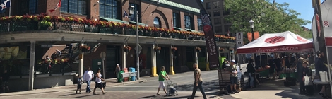 Anyway…hooray Autoshare! Only 45 minutes after our target take-off time we were blasting down the QEW, taking advantage of the high-occupancy/green vehicle lane and lack of traffic to make great time to Beamsville. Our first few stops — Hidden Bench, Daniel Lenko and Tawse — were old familiar sites, and were lucrative indeed. Heading east, we angered a long line of bikers pulling into Stoney Ridge to pick up a case of Pinot for my buddy Joe, then drove into the village of Jordan for lunch at Zooma Zooma Cafe‘s patio. The food (ploughman’s lunch for Nellie, chicken sandwich for me) was tasty, but the service was anything but zooma…we waited outside for a long time before getting our bill, during which time my pasty skin got sunburned. No matter; it was a beautiful day and we had more wineries to visit. Next we visited Flat Rock (who have a gorgeous tasting room…we could see our building back in Toronto!) and 13th Street, both for the first time. We then cut through St. Catharines, crossed the Welland Canal and began the drive toward Niagara-on-the-Lake. We stopped at one of our favourites, Southbrook, and finished our touring at an unlikely destination: Jackson-Triggs. Normally we avoid any place with tour buses parked out front, but this was the only place where we could buy wines made by their partner winery Le Clos Jordanne. Here we loaded up, stuffed everything into the car and drove to our hotel, the Shaw Club, a sanctuary from the plague of frilly NotL inns. We strolled around the corner to the Olde Angel Inn for a few pints before returning to the hotel to gird our loins for dinner.